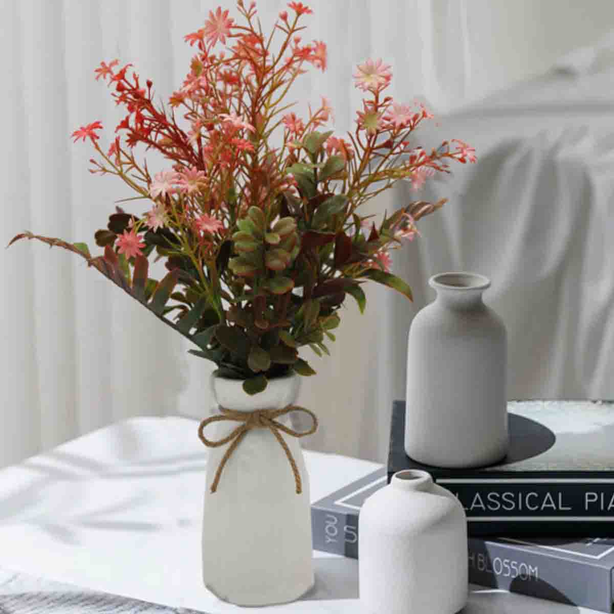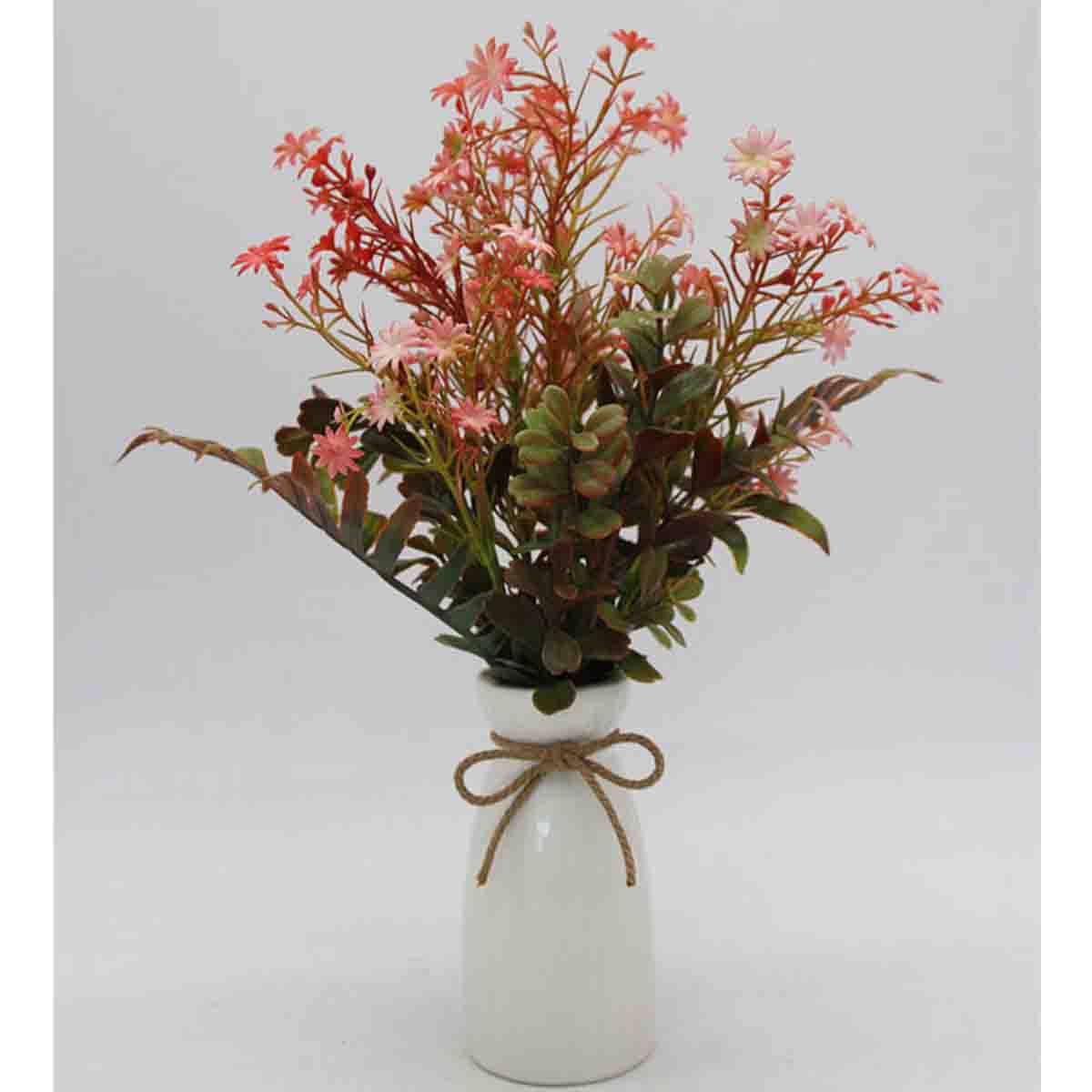 Artificial Pink Bouquet in White Ceramic Vase