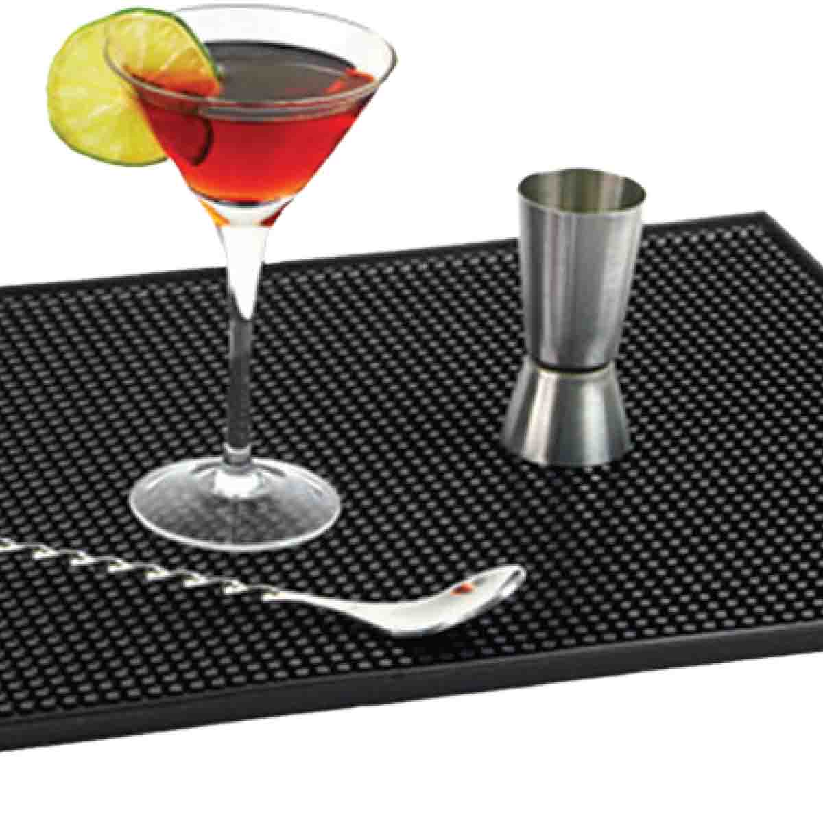 The Black Bar Mat with dimensions of 30 cm x 15 cm x 0.8 cm is an essential accessory for any bar or kitchen setting. Crafted from quality and durable material, this bar mat provides a protective layer against spills and scratches.The sleek black color not only adds a touch of elegance to the space but also makes cleanup a breeze. Keep your bar area organized and stylish with this versatile and functional bar mat.