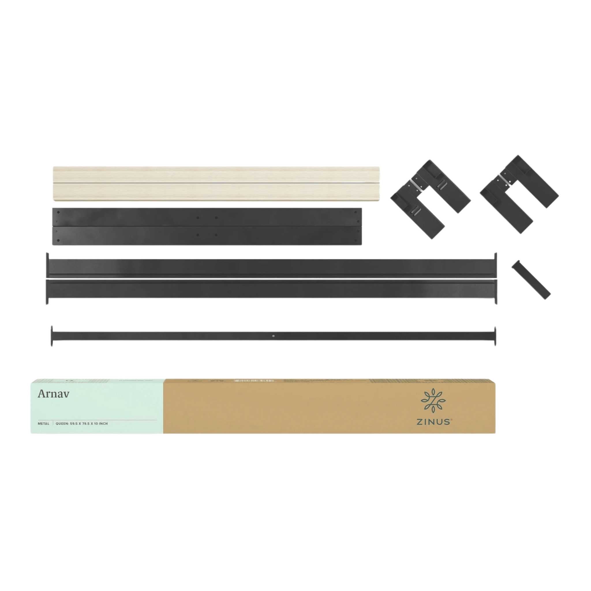 Sleek and functional, the Arnav bed frame brings a modern touch to your bedroom while delivering reliable, long-lasting support. Its sturdy metal structure combined with durable wooden slats provides optimal mattress support—no box spring required. With a 10-inch height, it offers convenient under-bed storage to keep your space organized and clutter-free.