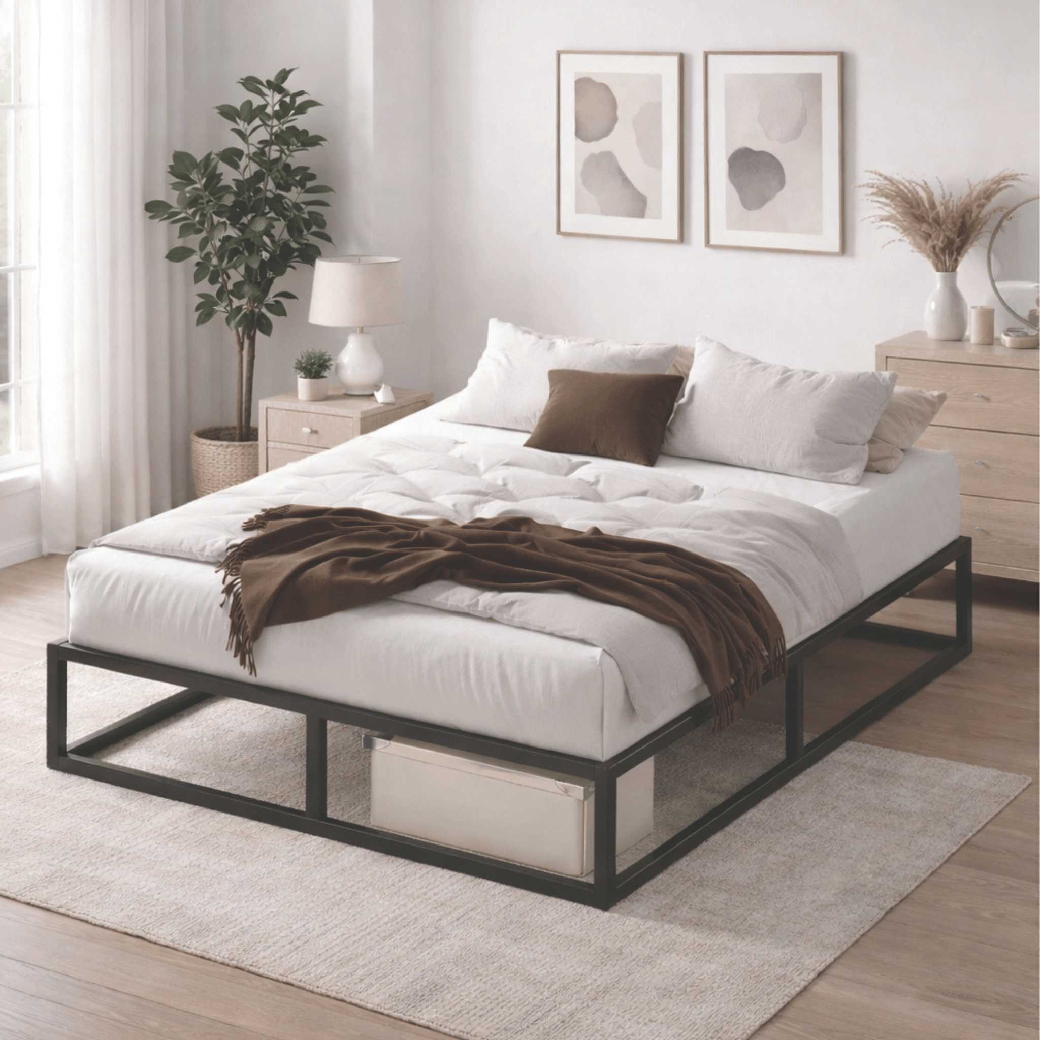 Minimal and timeless, the Joseph bed frame stands out with its clean design and everyday functionality. Its sleek black metal structure brings a modern edge to your bedroom while providing a strong and reliable foundation for your mattress.