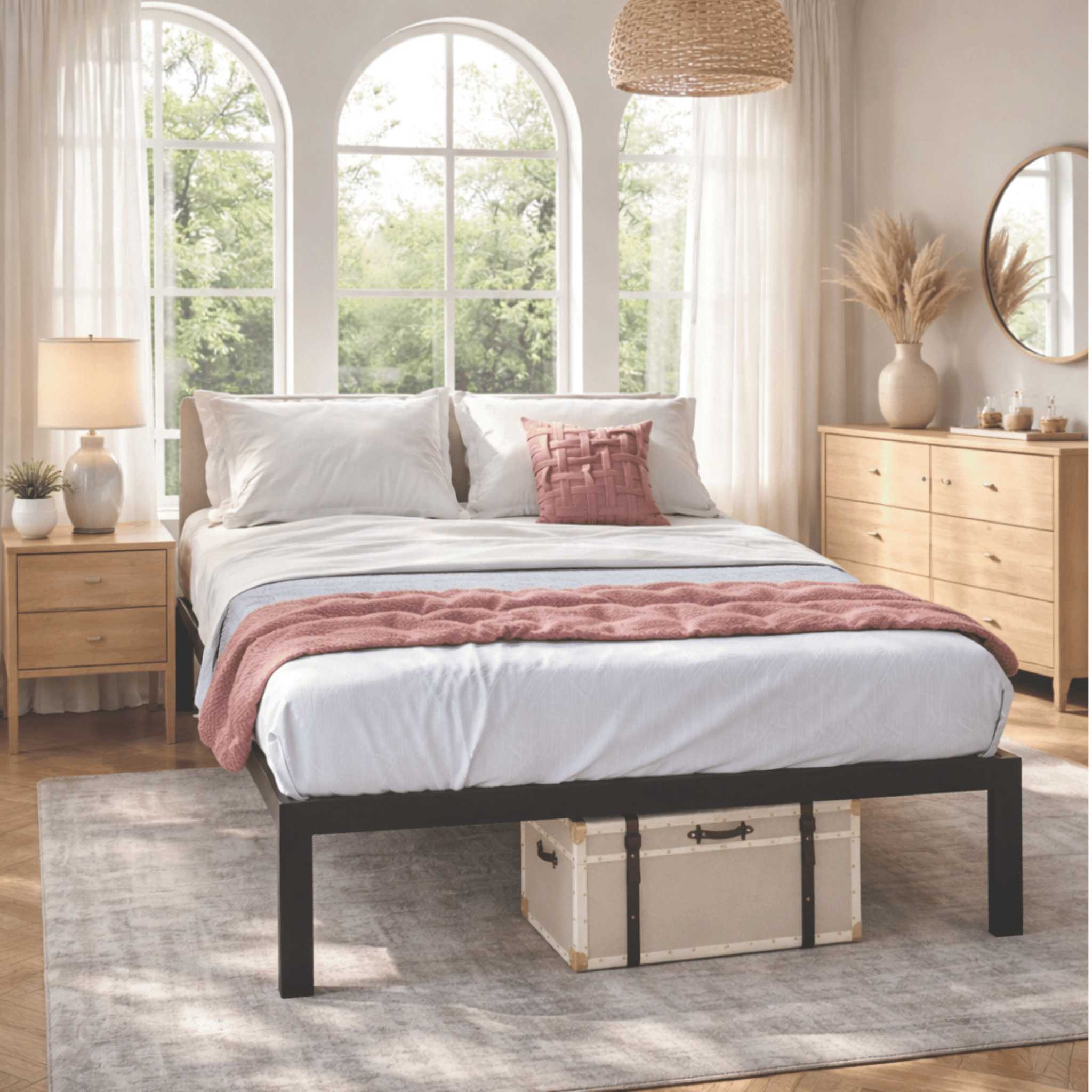 Sturdy metal slat system — no box spring required