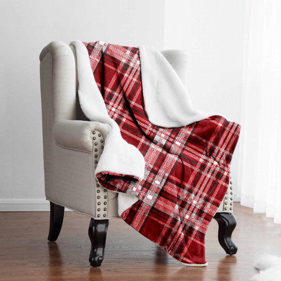 Christophe Plaid Fleece Reverse to Sherpa Throw 50x60