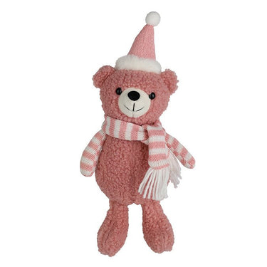 Fabric Sitting Bouclé Bear with Santa Hat & Scarf – 25cm (Pink/White)