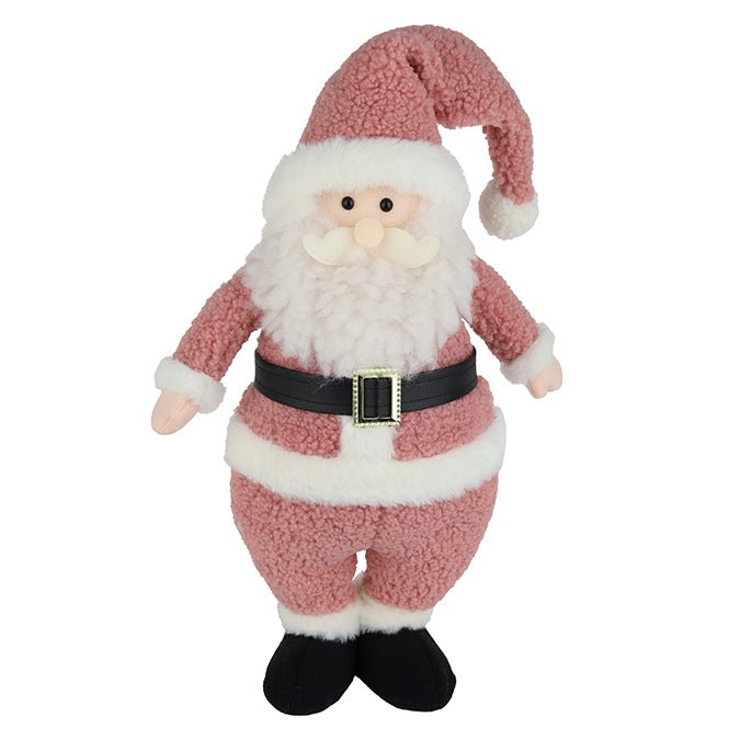 Fabric Standing Bouclé Santa – 40cm (Pink/White)