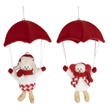 Fabric Snowman with Parachute – 32cm (2 Assorted: White & Red)