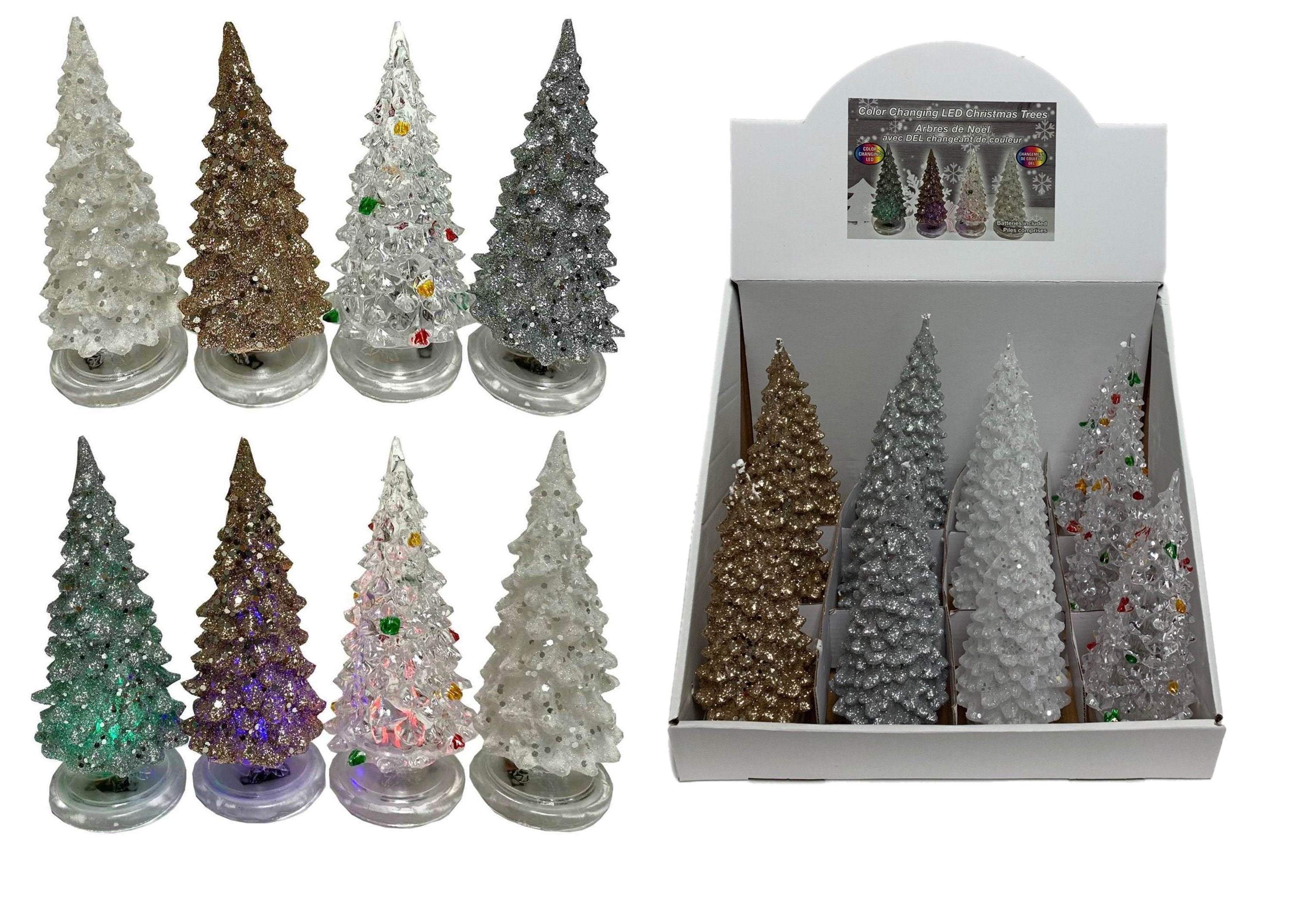 CHRISTMAS LED COLOR CHANGING TREE W/GLITTER IN DISPLAY 7.75INCH