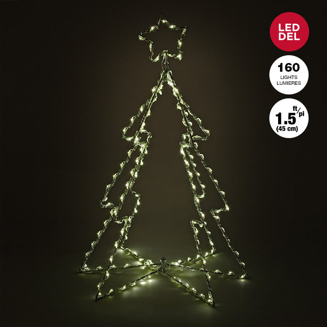 Add a festive glow to your holiday décor with this LED light-up Christmas tree silhouette. Standing 45 CM tall and featuring 160 warm white LEDs, it creates a simple yet elegant outline of a Christmas tree topped with a star. Perfect for indoor or outdoor use, this decoration brings a modern and magical touch to your seasonal setup.