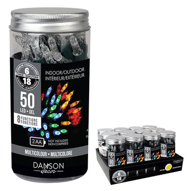 Add a playful and festive touch to your space with this set of 50 multi-color LED string lights, neatly stored in a reusable jar. Their bright and colorful glow creates a cheerful atmosphere, perfect for parties, holidays, or everyday decoration. Compact and easy to place anywhere, they combine convenience with decorative charm.