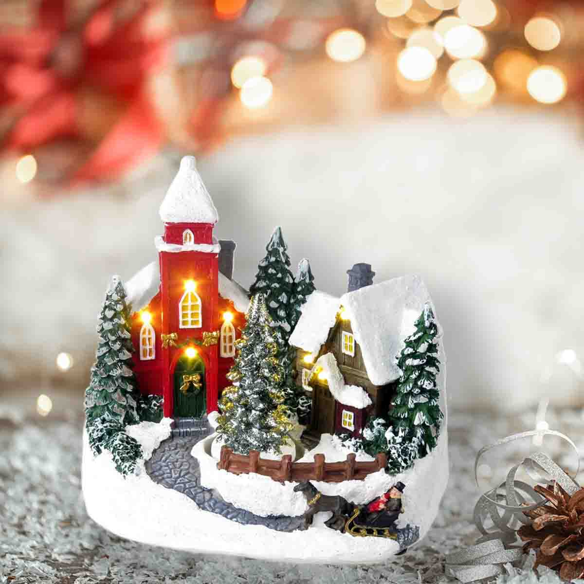 The Lauren Taylor Xmas Church Turning Tree Musical Led is a charming and festive Christmas decoration.This decorative piece features a church with a turning tree and is illuminated by LED lights, adding a warm and inviting ambiance to your holiday decor.Ideal for tabletop or mantel display, this decorative item brings joy and whimsy to your Christmas celebrations.