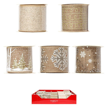 Fabric Ribbon with Wire Edge – 6.35cm x 274cm (5 Assorted Designs)