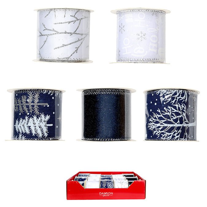 Fabric Ribbon with Wire Edge – 6.35cm x 274cm (4 Assorted Designs)