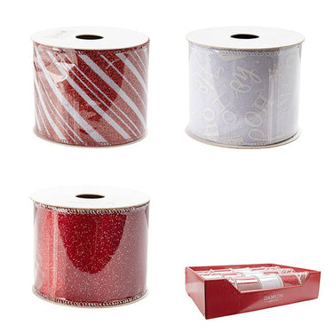 Fabric Ribbon with Wire Edge – 6.35cm x 274cm (3 Assorted Designs) Red-white 12 PDQ