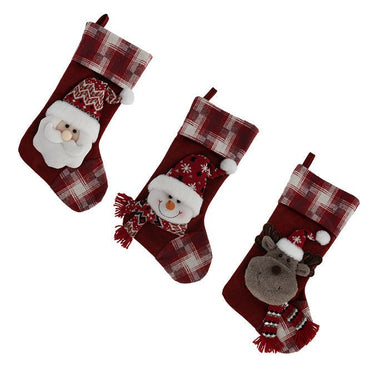 Make your mantel merry and bright with these festive Fabric Stockings featuring Plush Characters! Measuring 47cm, each stocking showcases a soft and detailed plush figure — Santa, Snowman, or Reindeer — crafted in traditional red and white Christmas colors for a warm and joyful holiday look.
