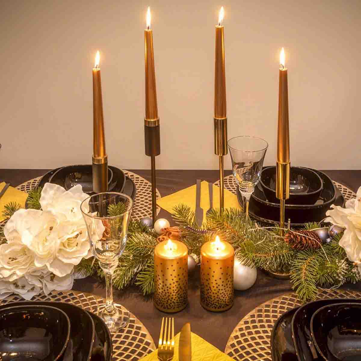 The Dinner Candle Set Of 6 Gold Candles is the perfect choice for those who appreciate the beauty of a candleβs soft, light. The Gold color adds a touch of sophistication and elegance to your dining table or any other space where you choose to display them. Gold candles are often associated with warmth, and celebration, making them a wonderful choice for intimate dinners, festive gatherings, or simply adding a pop of color to your home.