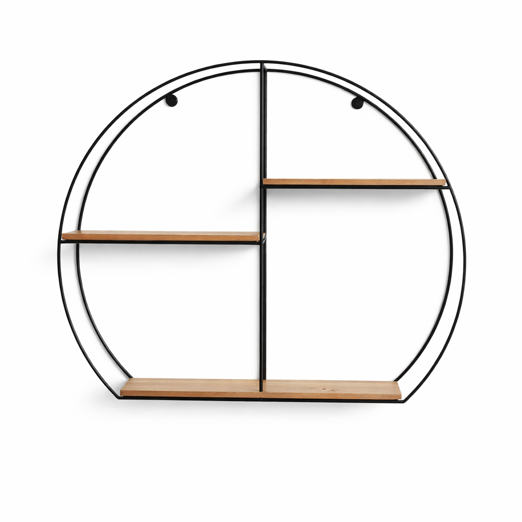 Round Wall Shelf – Metal & MDF Decorative Storage Unit