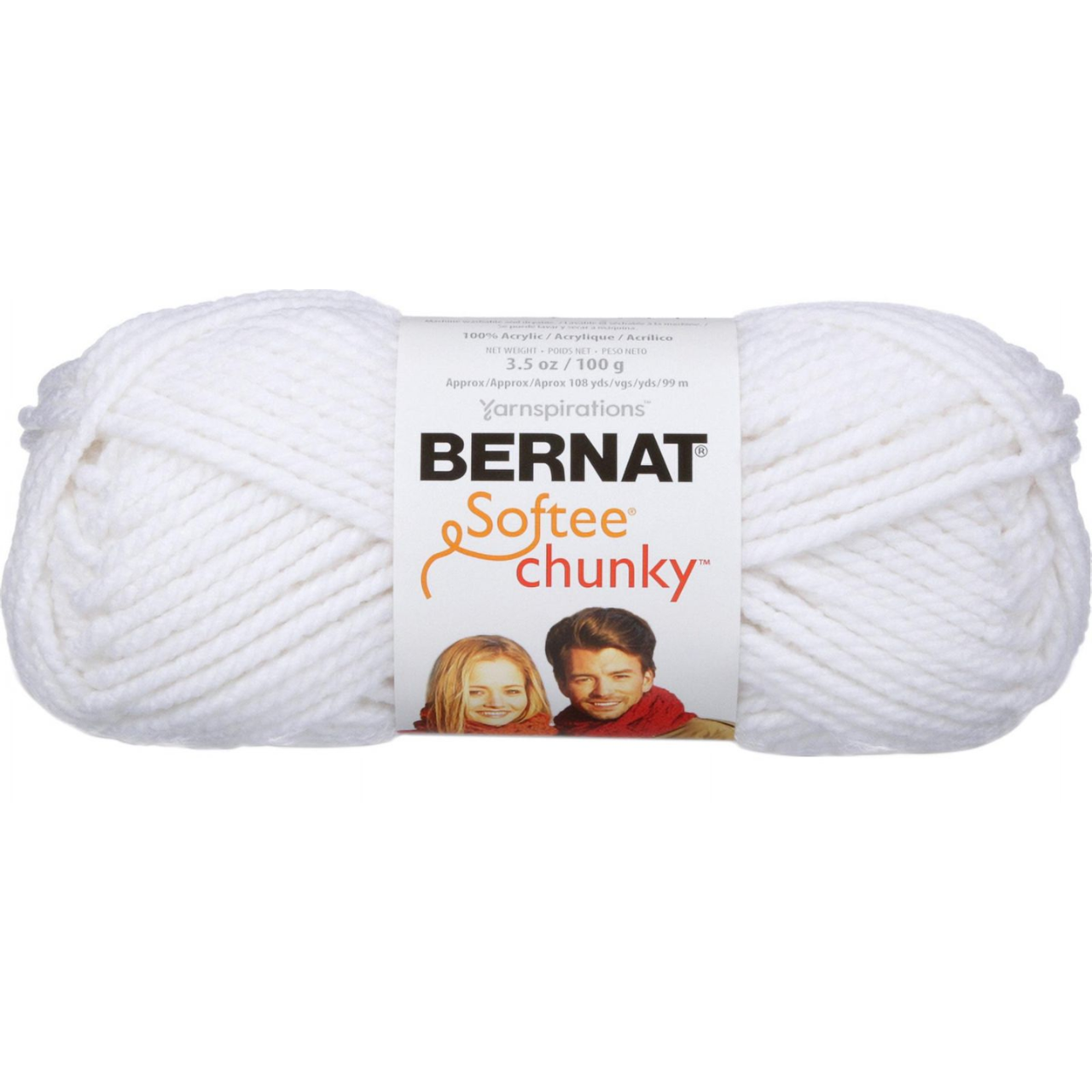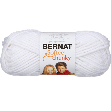 Knit and crochet cozy creations in no time with Bernat Softee Chunky in White. This bulky weight yarn is soft to the touch and perfect for warm, comfortable projects with beautiful stitch definition and plush texture.