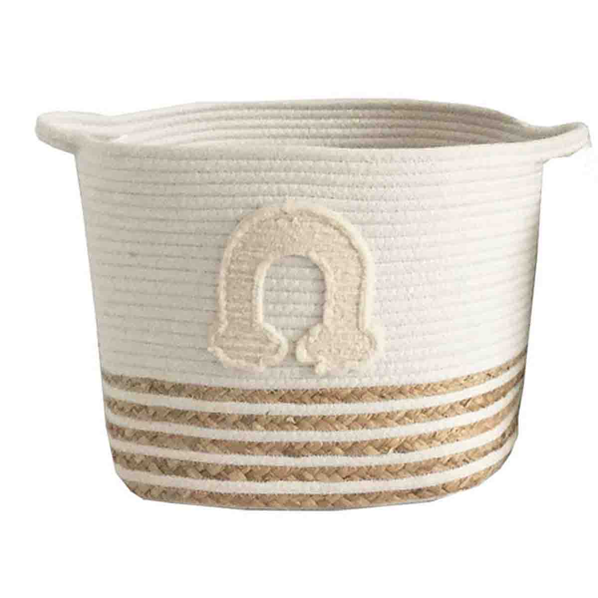 The Lauren Taylor Rope Basket with Arc Applique is a stylish and versatile storage option for your home. This basket features a durable rope construction with a unique arc applique design, adding an artistic touch to your decor.The spacious interior of the basket allows you to store blankets, toys, clothes, or any other household items. Whether used for organization or as a standalone decorative piece, the Lauren Taylor Rope Basket with Arc Applique offers both functionality and aesthetic appeal to enhance your living space.