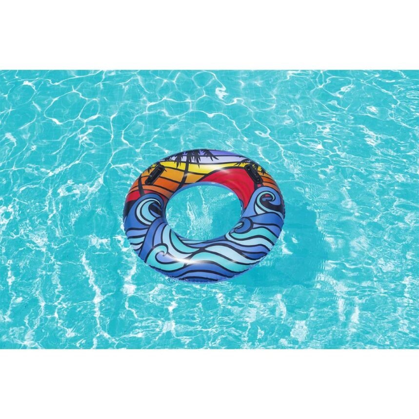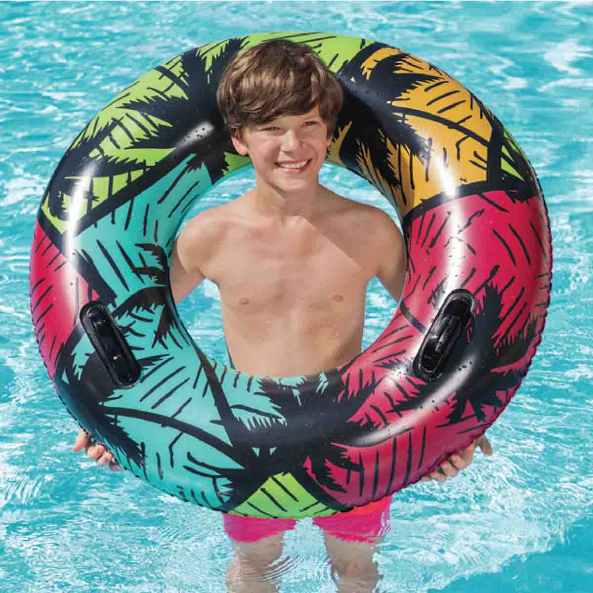 Float away on your own little oasis with the Bestwayยฎ CoastalCastawayโข Swim Tube. Designed for swimmers ages 10 and up, the colorful and artistic seaside design will make you (or your child) feel like you're on vacation without even leaving the backyard. Or if you want to venture seaside, the heavy-duty handles make getting in and out of the tube effortless. It's the perfect accessory for the pool, beach, lake or river. So, wherever your water travels take you, the Bestway CoastalCastaway Swim Tube is easy to inflate, deflate, and store making the fun in the sun lasts for seasons to come.