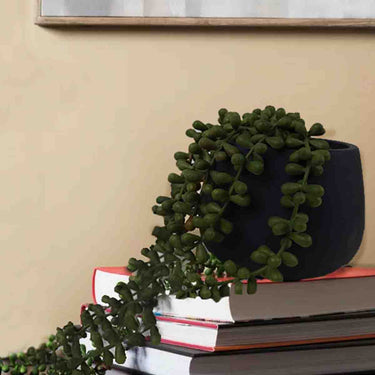 Artificial String of Pearls in Marble & Indigo Cement Pots