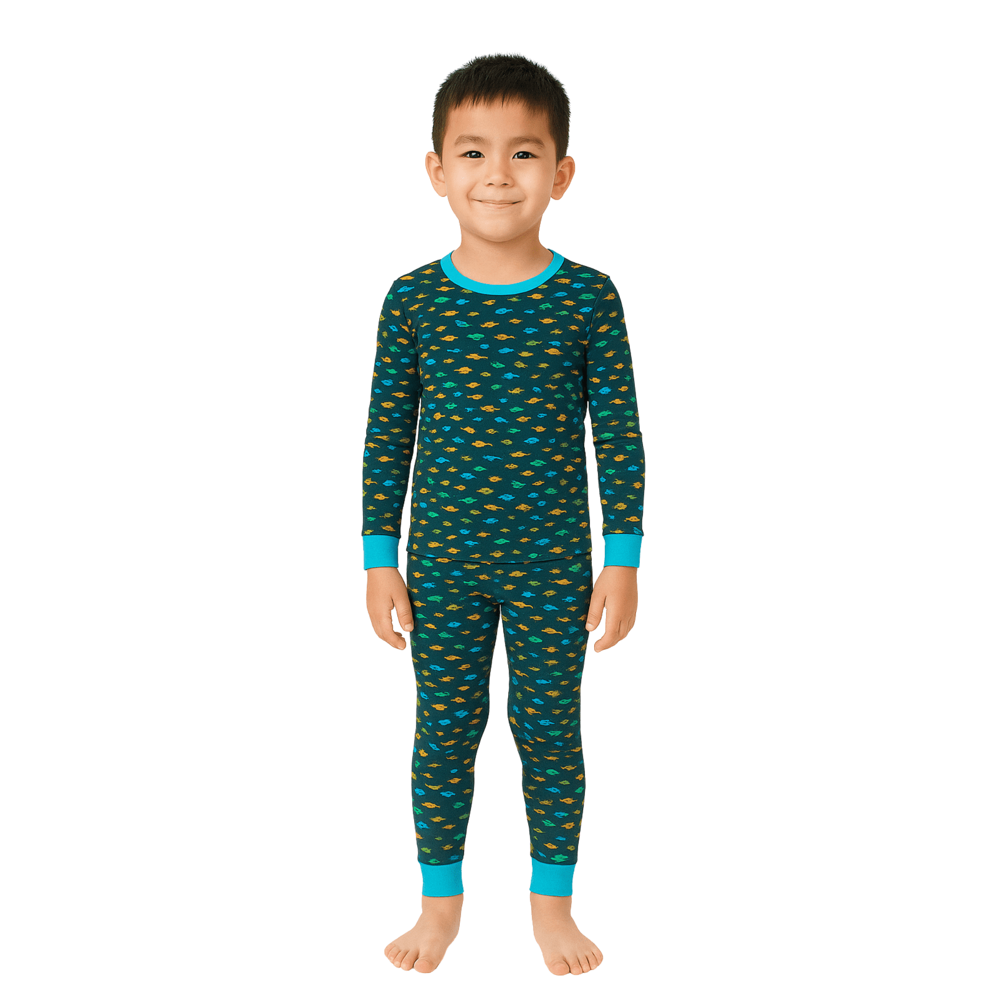 Make bedtime fun and cozy with this printed pajama set for boys. Designed in a soft, breathable cotton-blend fabric, it ensures all-night comfort and warmth. The playful all-over print adds a cheerful touch, while the contrast cuffs and neckline bring a pop of color. With its snug fit and stretchy material, this two-piece set is perfect for lounging, sleeping, or weekend mornings at home.