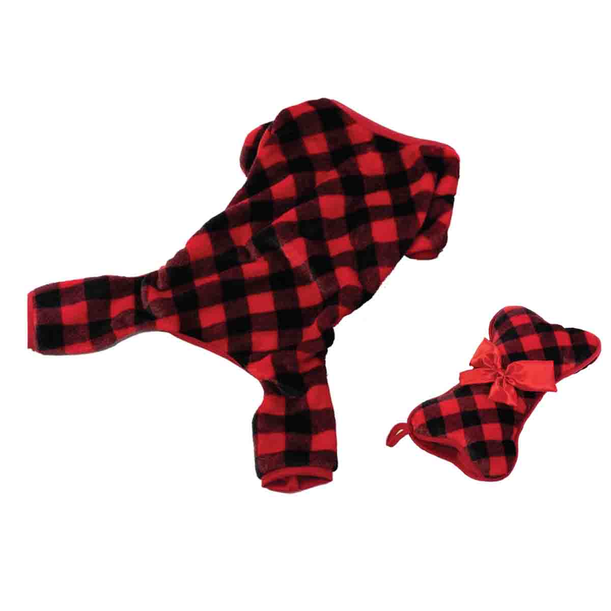 The Dog Pajama & Stocking Set is a cozy and festive gift bundle for your dog, featuring a warm pajama for chilly nights. Perfect for adding a touch of holiday cheer to your pet's wardrobe and celebrations.