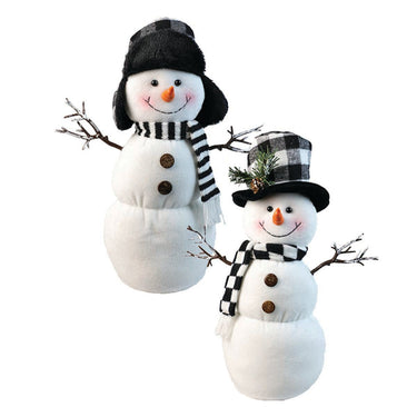 Fabric Snowman With Hat And Scarf 36cm 2 Asst White/black