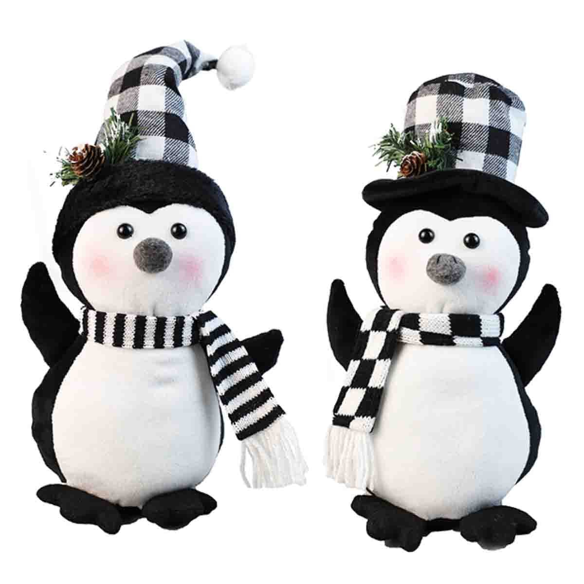 Fabric Standing Penguin With hat And Scarf 30cm 2 Asst