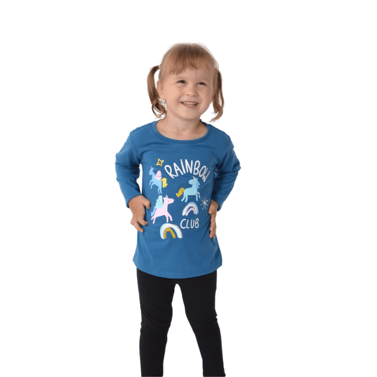 Our girls long sleeve tee shirt is a great choice all year round, whether it's sunny or cold. With long sleeves, round neck and a vibrant print, it will be the perfect staple item in any wardrobe.