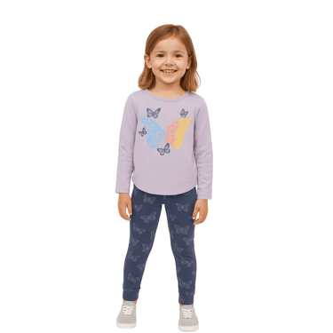 Playful, comfy, and full of charm — this 2-piece set is perfect for every little girl who loves color and imagination. Each outfit includes a soft long-sleeve top with a fun print and matching leggings in coordinating patterns. The unicorn design adds a touch of magic, while the butterfly print brings a sweet, nature-inspired feel. Made from soft, stretchy cotton-blend fabric, these sets are ideal for school, playdates, or cozy days at home.