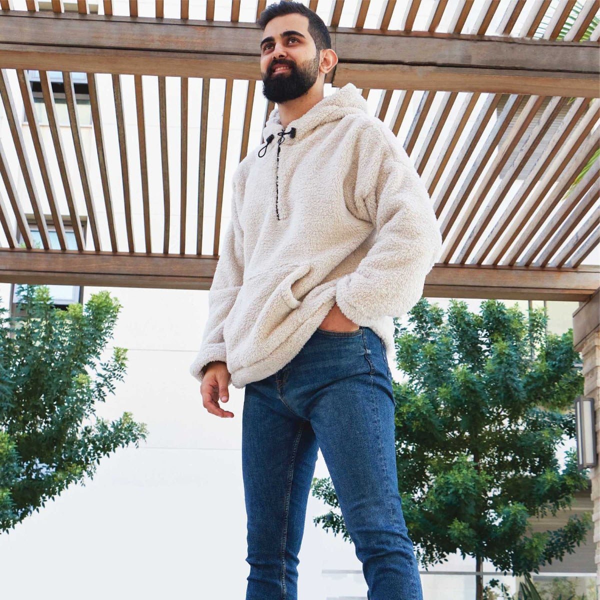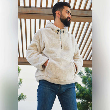 Our men's Sherpa jacket is the perfect way to stay warm and look stylish. A relaxed fit gives it a modern look, while dual pockets help keep your essentials close at hand.