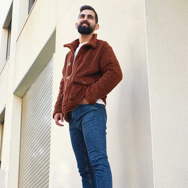 Warm and stylish, our classic men's Sherpa jacket is an iconic wardrobe staple. This sherpa jacket has two pockets, for secure storage of your phone, keys and other essentials.