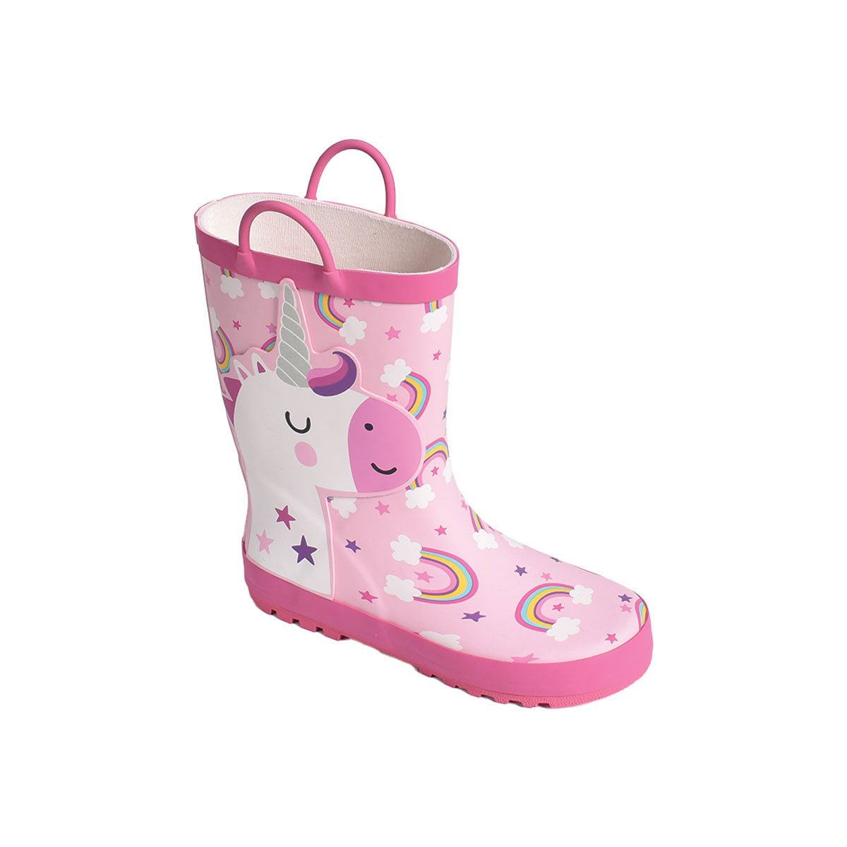 Misses Rubber Boots With Artwork are designed to provide both functionality and style for young girls. These boots are typically made from rubber material to keep feet dry and protected from wet conditions. The artwork on the boots often features colorful designs that appeal to girls' interests and preferences. These boots serve as a fun and practical footwear choice for a variety of outdoor activities and adventures.