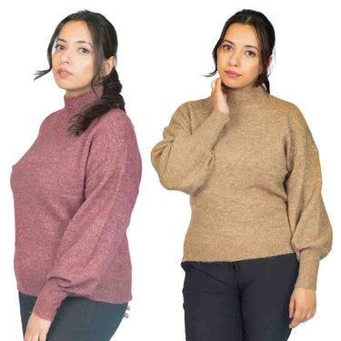 The Mockneck Ballon Sleeve Sweater Is a perfect choice for your wardrobe. This sweater features a stylish mock neck, long sleeves and great shape.