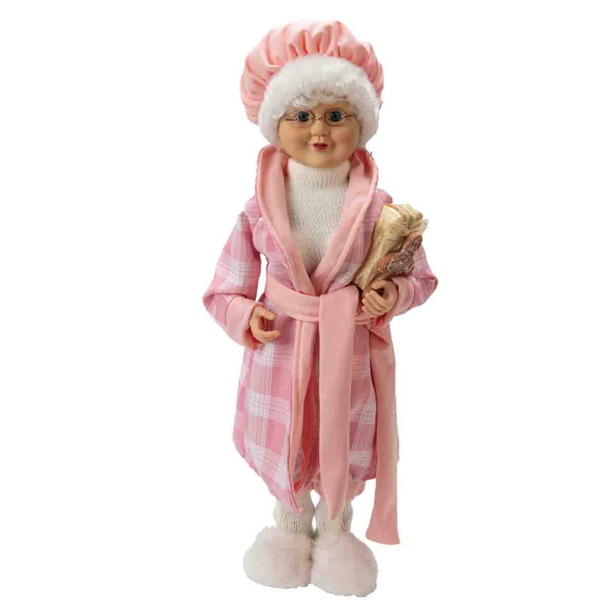 Mr & Mrs Claus Fabric Standing Figure Pink Bathrobe