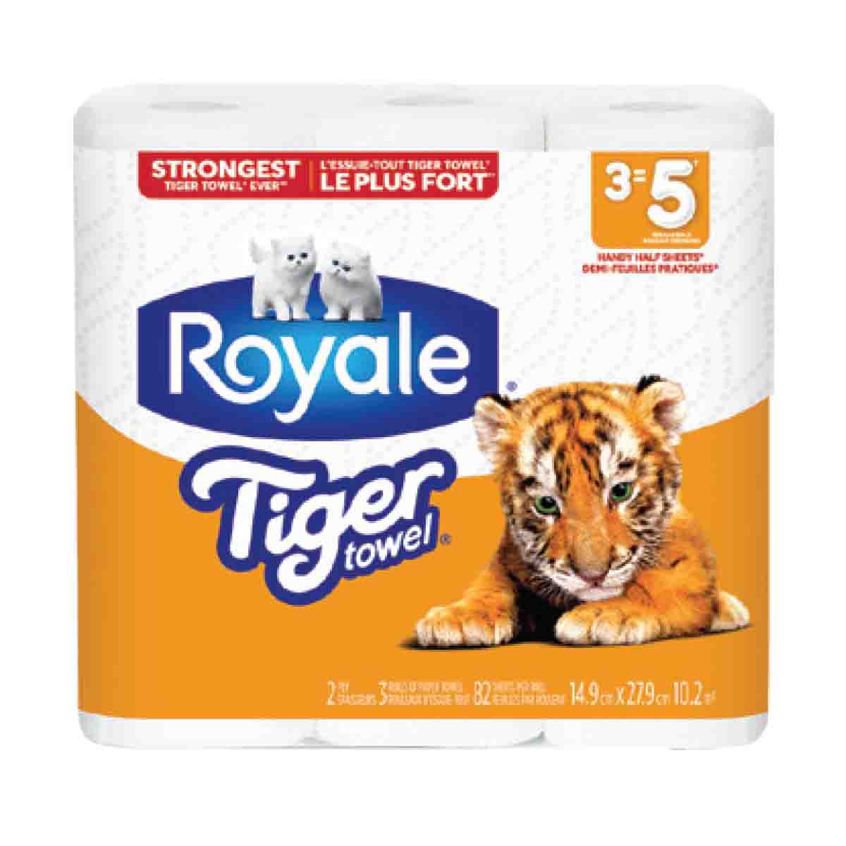 Royale 3 roll Tiger Towels are reliable, absorbent paper towels for everyday use. With its strong and durable construction, these paper towels are designed to handle a variety of cleanup tasks effectively. Whether for kitchen cleanup or general household use, the Royale Paper Towel Tiger Towels provide a convenient and effective solution for maintaining cleanliness and tidiness in your home.