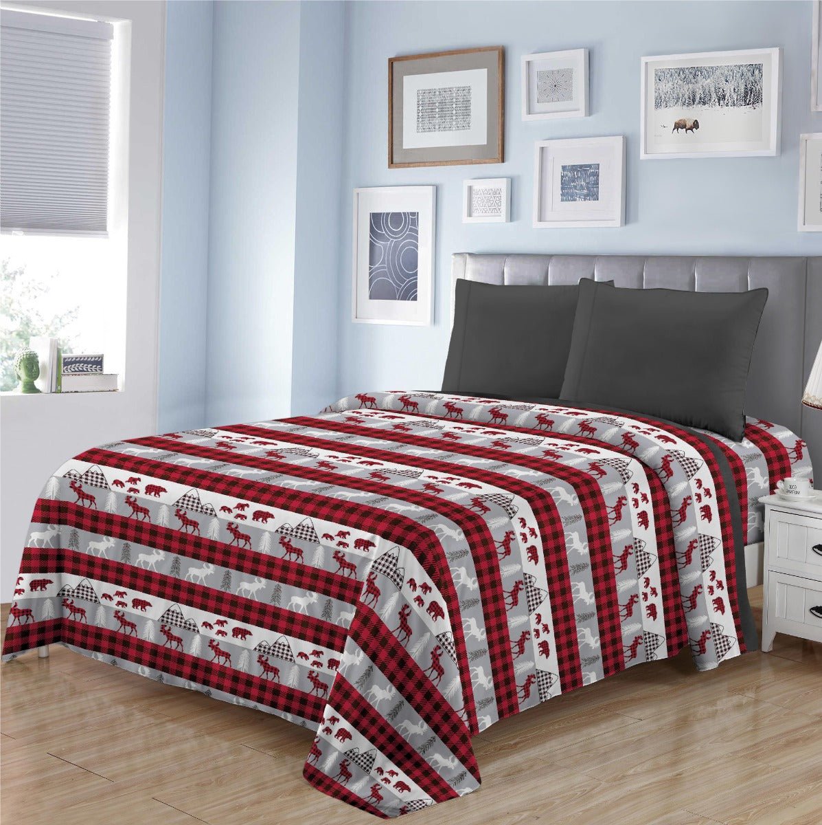 The Rustic Cabin - Winter Wonderland Microfleece Sheet Set offers a warm, cozy sleep through the cold winter nights while keeping you cozy and comfortable.The 100% polyester microfleece material allows air to pass through, allowing for breathability while sleeping, preventing overheating or feeling hot at night. Perfect for many sleepovers and guest rooms!
