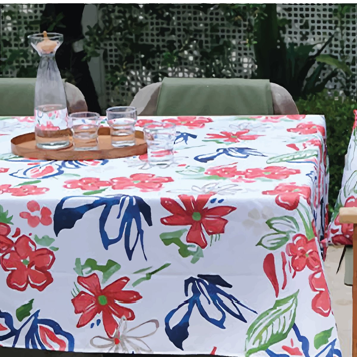 Fashionable and functional, our Sol Del Mare Aloha tablecloth is sure to make a statement at your next party or dinner.The tablecloth comes in different designs and colors. It is perfect for any outdoor event.