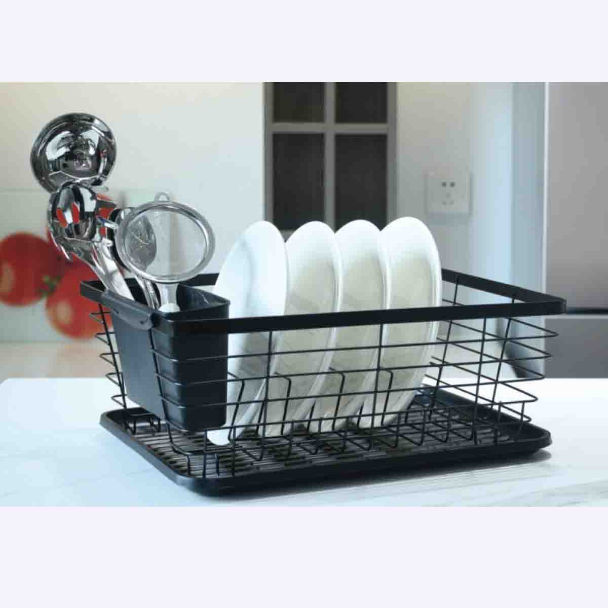 A dish rack is a kitchen accessory used for drying and organizing washed dishes, and utensils after they have been cleaned. This dish racks come with separate compartments or holders for organizing utensils like forks, knives, and spoons. These holders keep the utensils upright, making them easily accessible and allowing moisture to drain away.This dish rack allows air to circulate around the dishes, promoting faster drying and helping to prevent water spots. It also keeps the countertop or sink area organized and clutter-free.