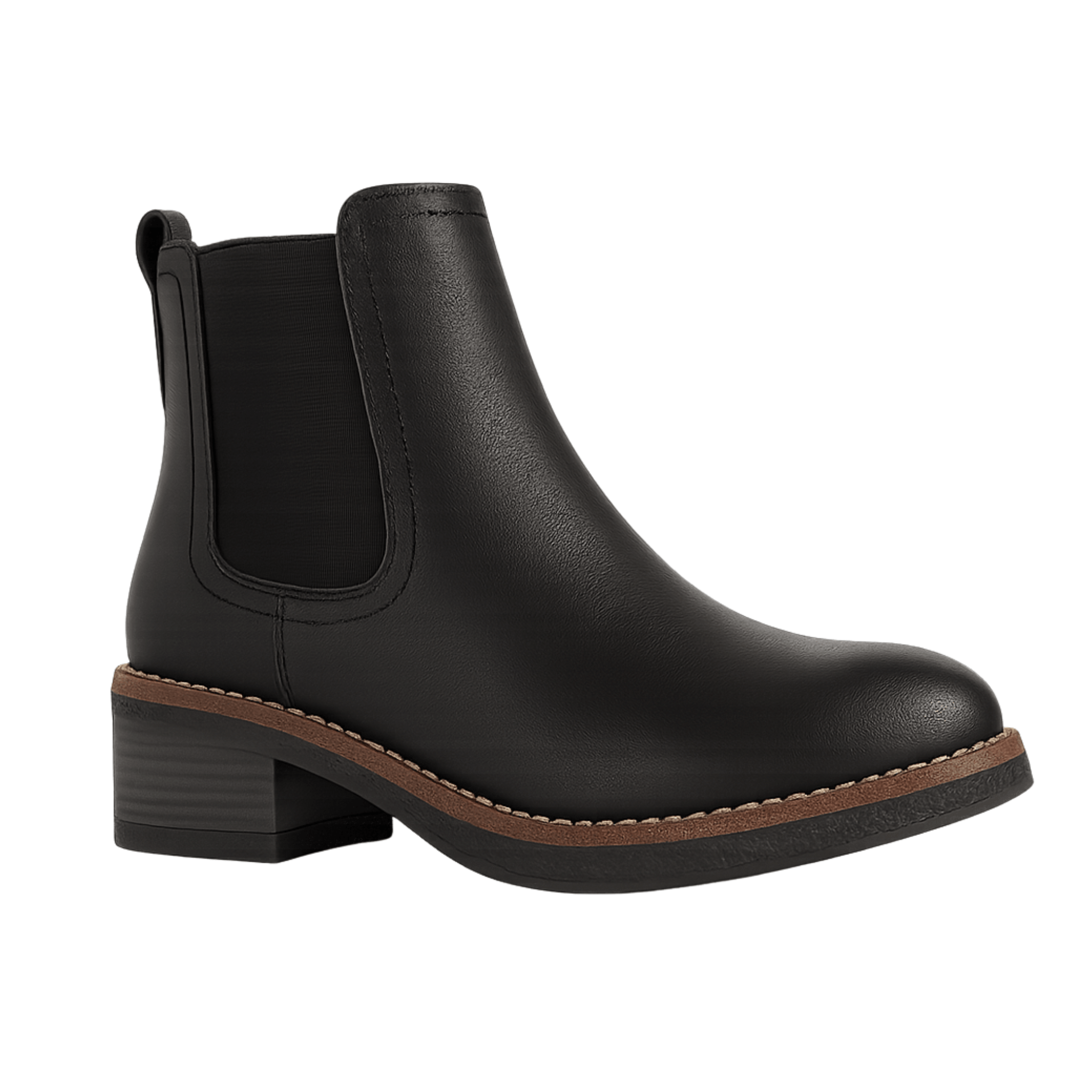 Step into timeless style with these classic faux leather Chelsea boots. Featuring the iconic elastic side panels and a sturdy block heel, they offer both comfort and sophistication for everyday wear. The smooth finish and clean silhouette make them easy to pair with jeans, dresses, or tailored pants. Available in sleek black and warm tan, these boots are an effortless essential for your fall and winter wardrobe.
