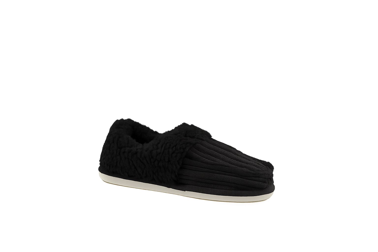 Wrap your feet in softness with these plush corduroy indoor slippers. Featuring a warm sherpa-style lining and a ribbed corduroy exterior, they combine cozy comfort with modern texture. The flexible sole provides light support, making them perfect for lounging at home during cool mornings or relaxing evenings. Available in classic black and soft rose, they add a touch of style to your everyday comfort.