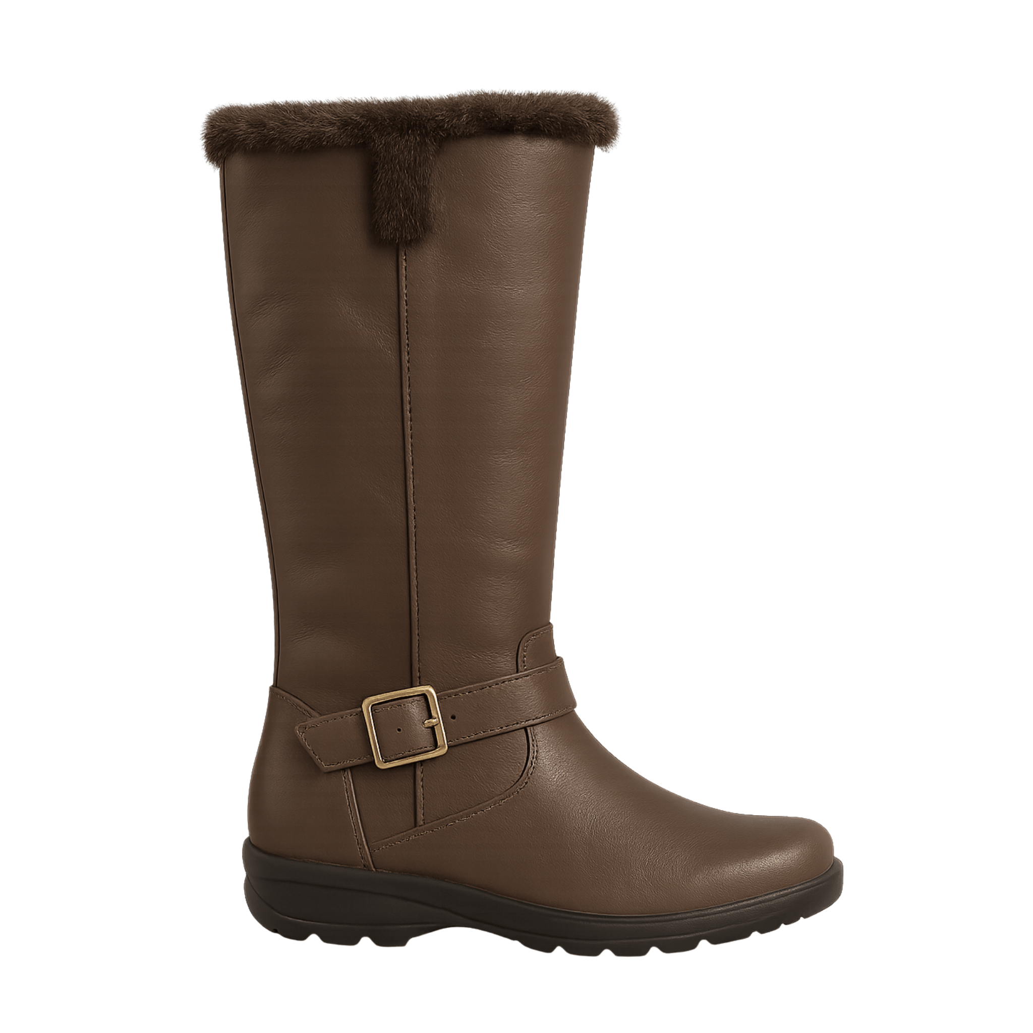 Stay stylish and warm this season with these faux leather mid-calf boots. Featuring a soft faux fur trim and a sleek buckle detail, they blend practicality with timeless elegance. The sturdy sole offers reliable traction for everyday wear, while the cozy interior ensures lasting comfort on colder days. Available in classic black and rich brown tones, these boots are a must-have for chic winter looks.