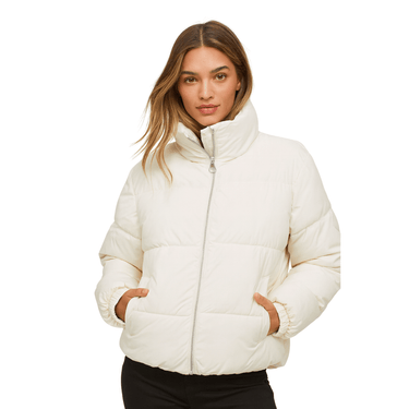 Stay warm in effortless style with this white high-neck puffer jacket. Designed for maximum comfort, it features a voluminous, quilted silhouette that offers lightweight insulation without adding bulk. The high collar provides extra protection against chilly winds, while the practical side pockets keep your hands cozy on the go. Perfect for everyday wear, outdoor strolls, or layering through the colder months, this puffer combines functionality with a clean, modern look.