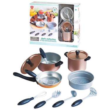 The Chef's Collection 12-Piece Metal Cookware Set is a wonderful Christmas gift for the kitchen.Hours of fun! Safe, durable and easy to use. Great for pretend play or role-play games like housekeeping and restaurant business with their kids.