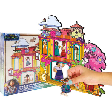 Disney Encanto Wood Casita Activity Set - Design, build and play with this great wood activity set. Start with the box and design your own free-standing casita! Color, build and sticker to design the casita, characters and accessories! Includes a sturdy wooden box with lid, 3 sheets of characters in various sizes, 2 sticker sheets, 3 markers and instructions