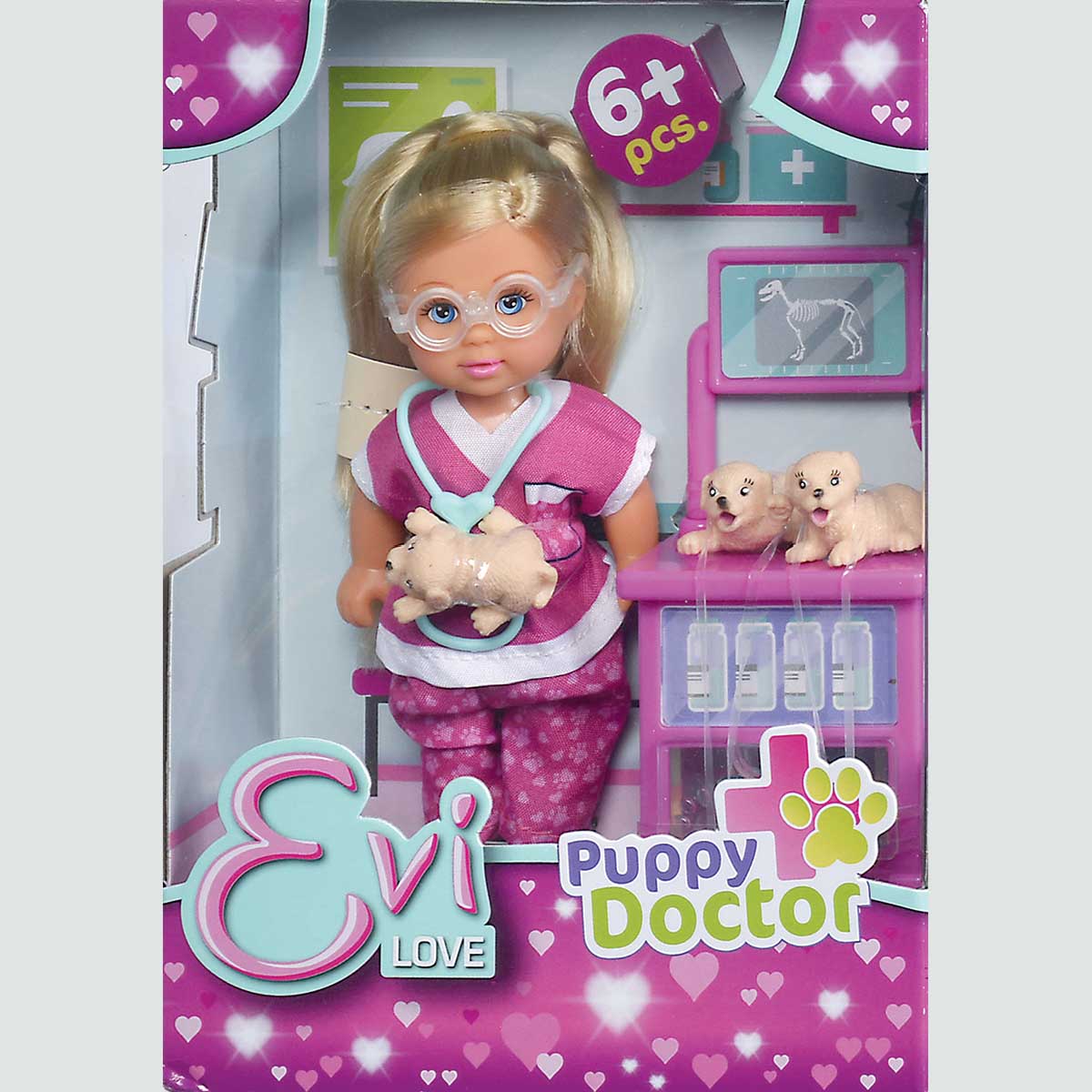 The Evi puppy doctor is the perfect Christmas gift for little girls.Evi Love is the little cute sister of Steffi LOVE. Like Steffi, she has great long hair, countless hobbies, loves animals and is ideally dressed for any occasion. Girls can style and dress their doll in the current fashion trends.Evi can examine the three small puppies on the treatment table. In addition, the set includes other doctor accessories that can be stored in the drawer.