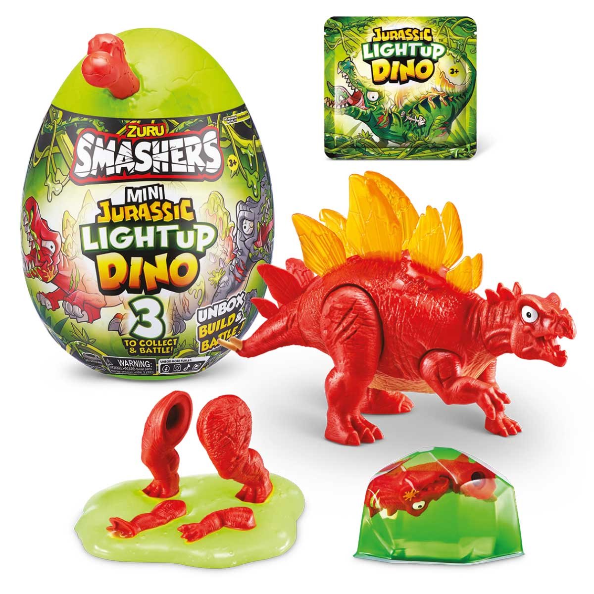 Smash-O-Saur is a brand new way to interact with dinosaurs. The eggβs shell is made up of 10+ surprises that will make your Smash-O-Saur light up and glow. Press itβs tail and watch your dinosaur light up with rage! Once youβre done smashing open the egg, you can take turns discovering the sticky slime inside, squishy sand and more.