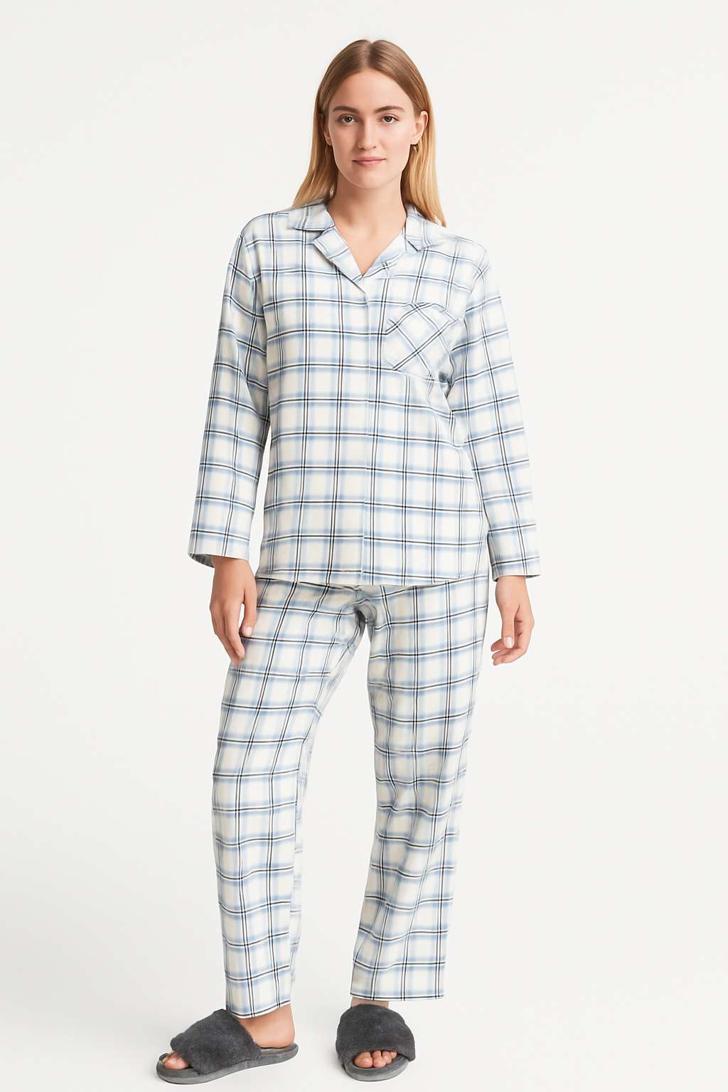 Wrap yourself in comfort with this classic checked pyjama set. Featuring a relaxed fit shirt with a notched collar and chest pocket, paired with straight-leg pants, this set is designed for cozy nights and slow mornings. Its soft fabric offers a breathable, lightweight feel, making it an essential for lounging or sleeping in style.