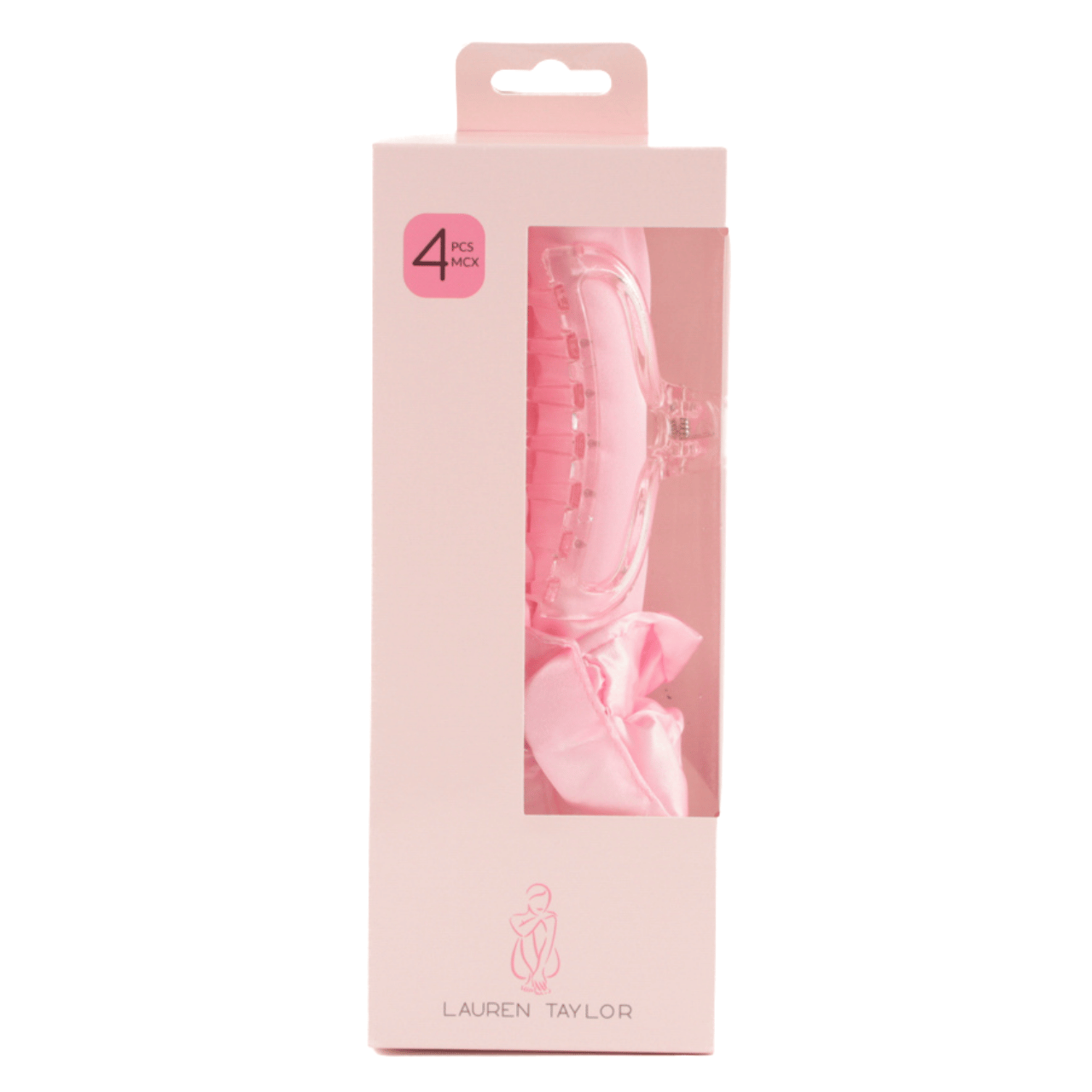 Hair Accessories Set – Pink Satin (4 Pieces)