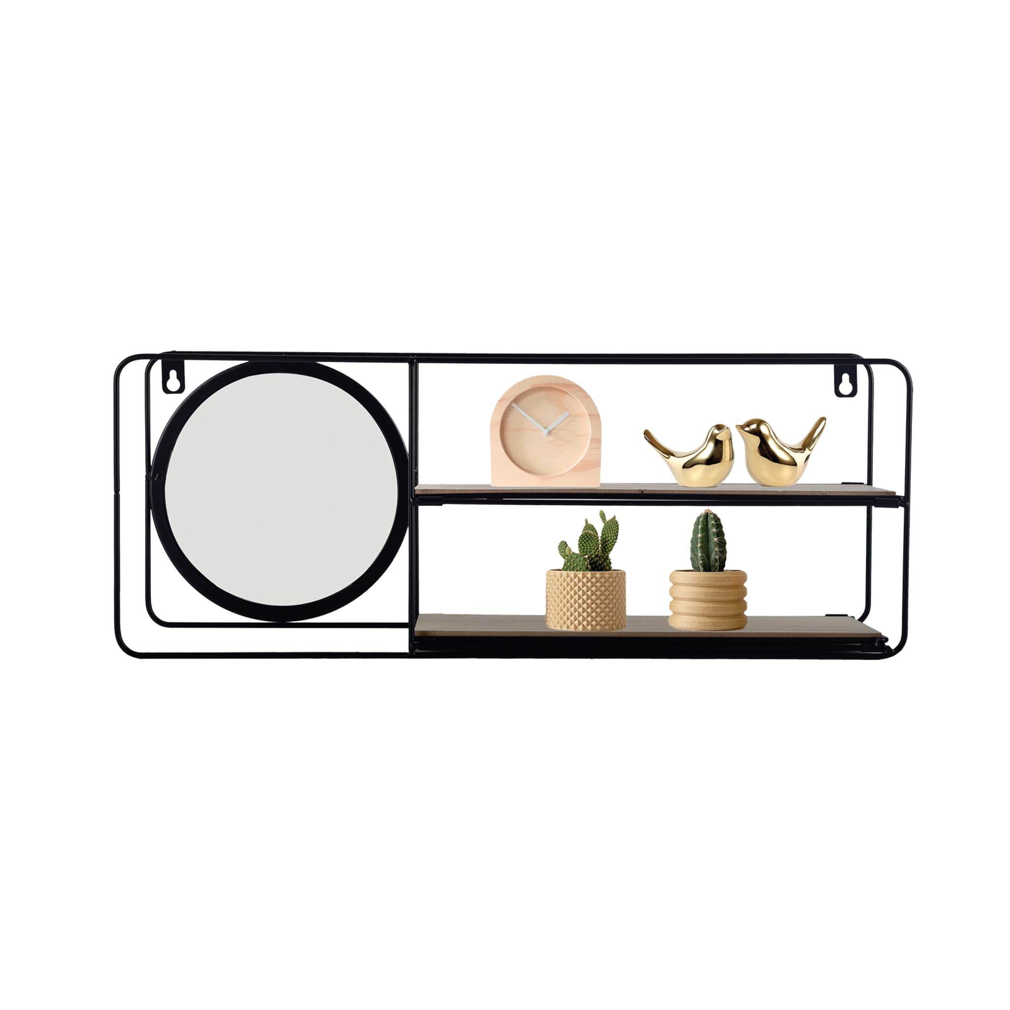 Ideal for displaying décor objects, plants, or everyday essentials, it creates a balanced and stylish wall arrangement.