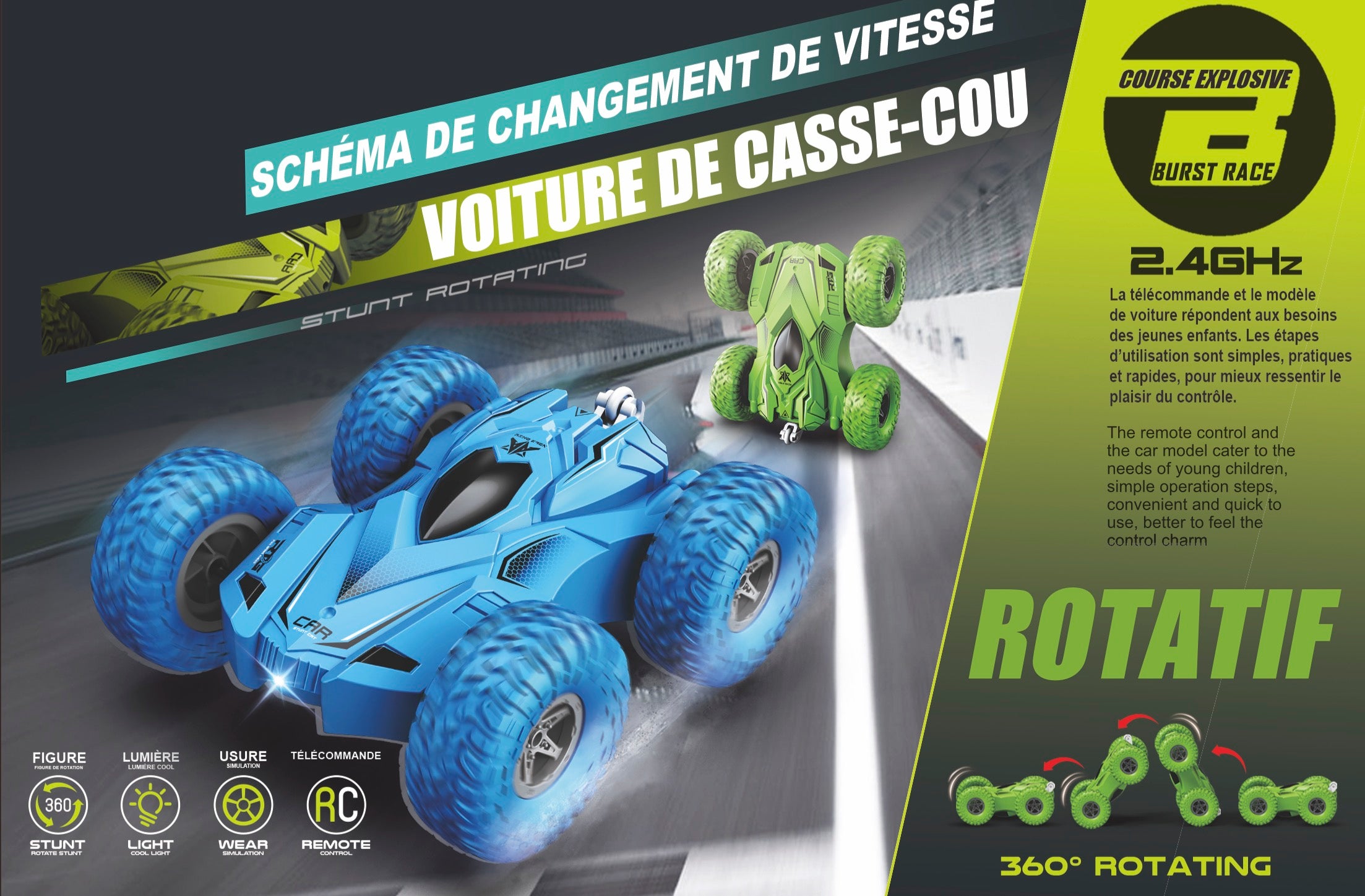 Designed for non-stop excitement, this high-performance stunt car performs 360° spins, flips, and double-sided driving with ease.